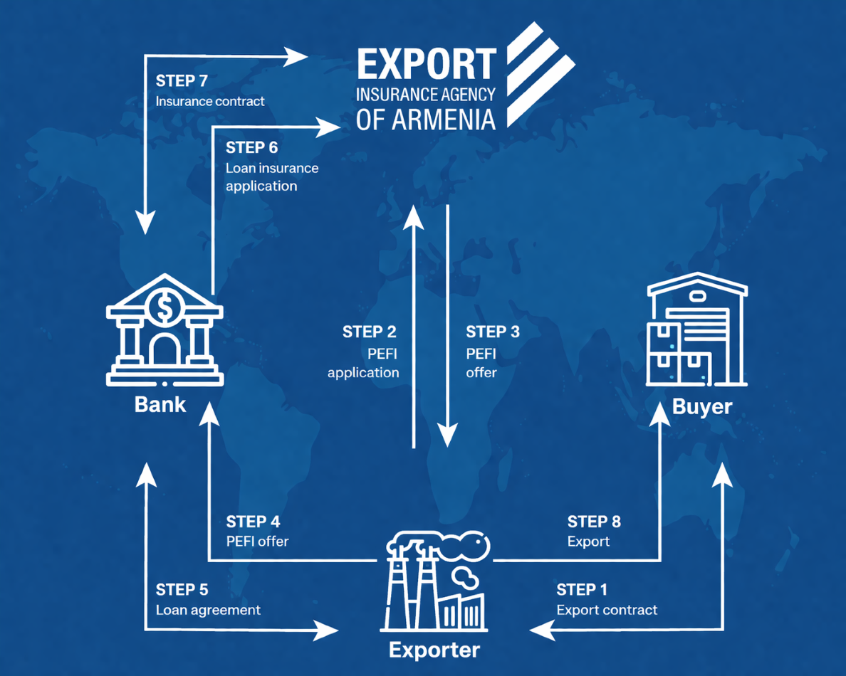 Pre-export financing insurance covers the risk of non-repayment of short-term export loans provided by banks and/or credit organizations of the Republic of Armenia to business entities engaged in exports from Armenia.